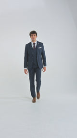 Herr 3-delad marinblå kostym med kritstrecksrand