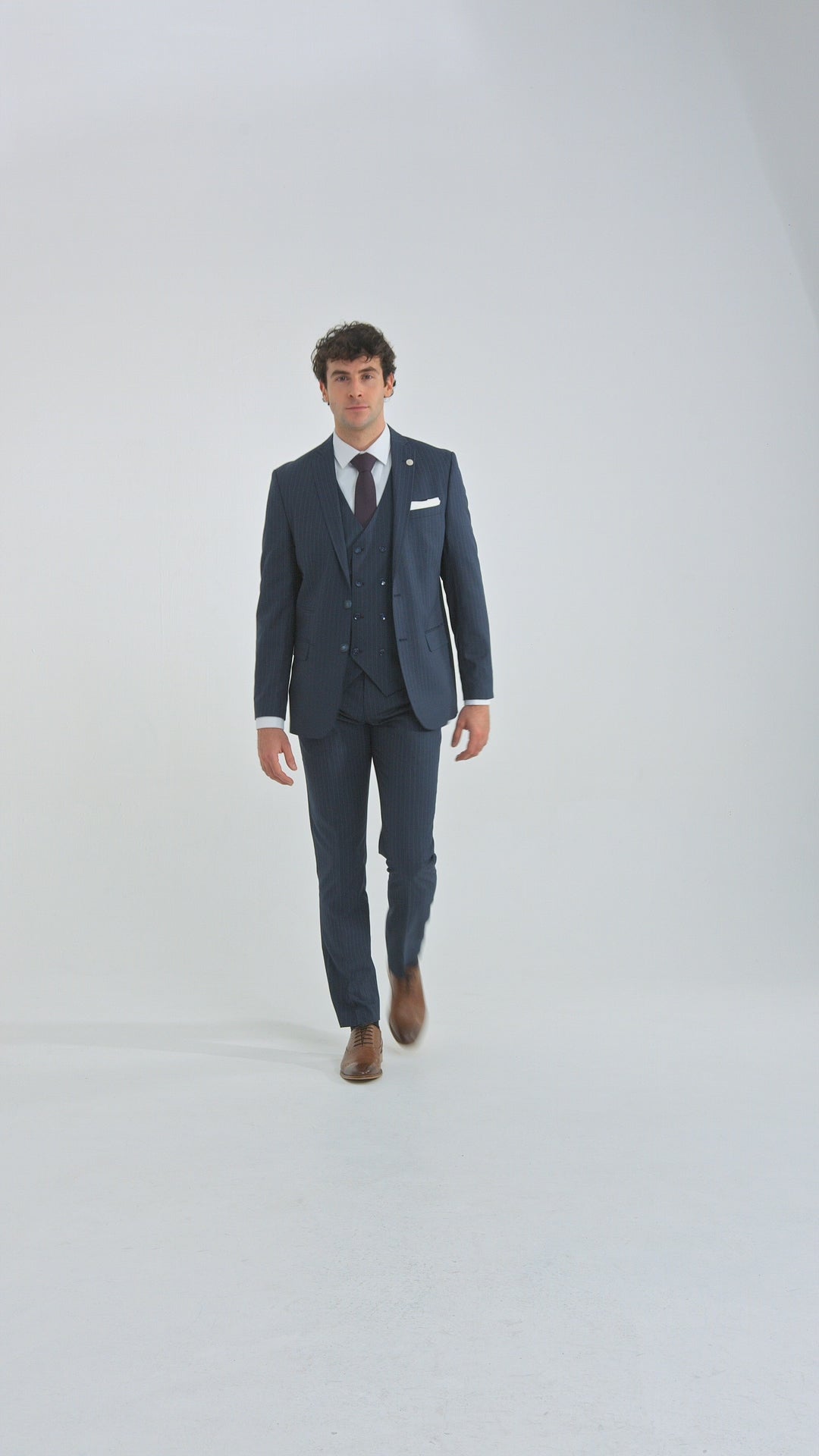 * Premium mjukt kritstrecksrandigt tyg, dubbelknäppt västdesign med kontrasterande ränder, kanter och detaljer